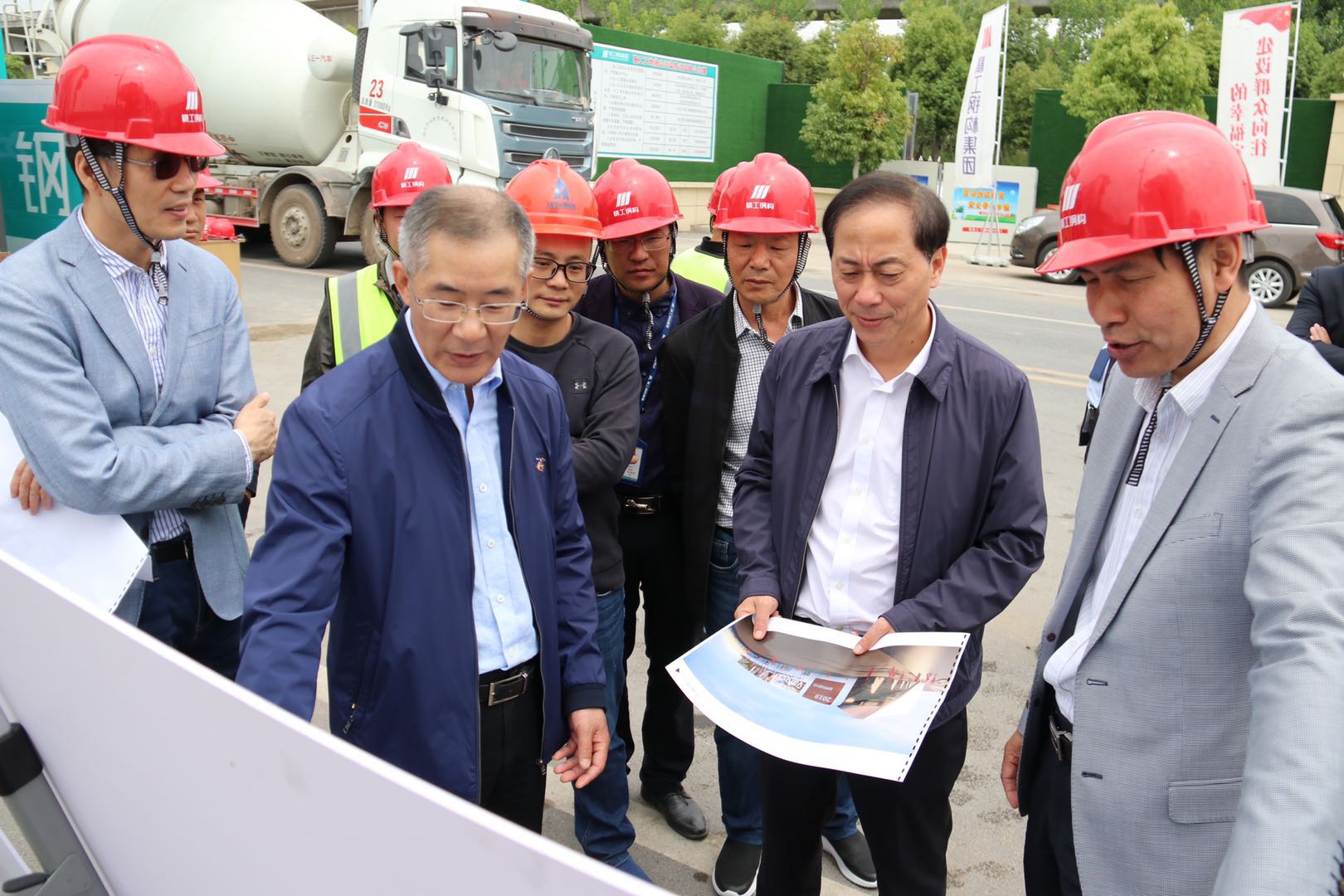 5月8日上午,柯橋區(qū)委常委、常務(wù)副區(qū)長諸劍明一行視察紹興國際會展中心一期B區(qū)項目,集團董事長滕建平、副總經(jīng)理茹建冬等陪同視察。